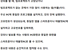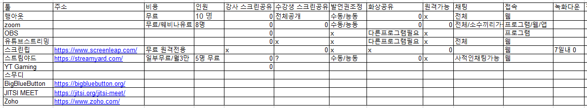 추천 : 유투브 스트리밍 ( 단점 : 다소 전송속도가 늦어져서 일방 소통이 많을떄 좋음)