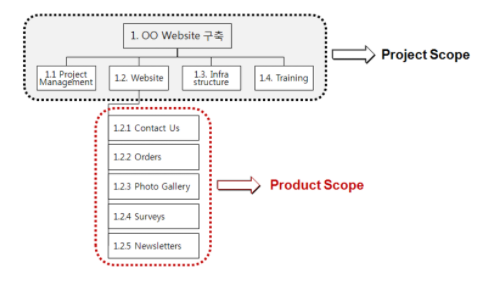 Product Scope(제품 범위): 제품을 특징짓는 기능이나 특징들. (범위 기술서)