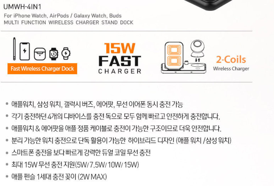 sk공식 판매로 올인원 무선 충전독 4in1 UMWH-4IN1 화이트 를 하나보내줫는데,,